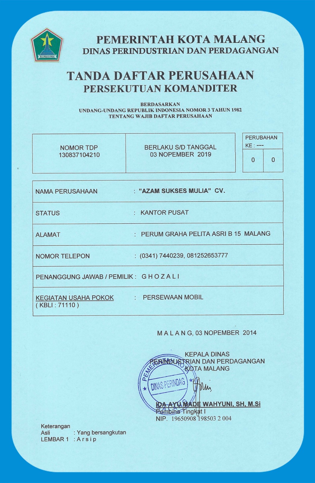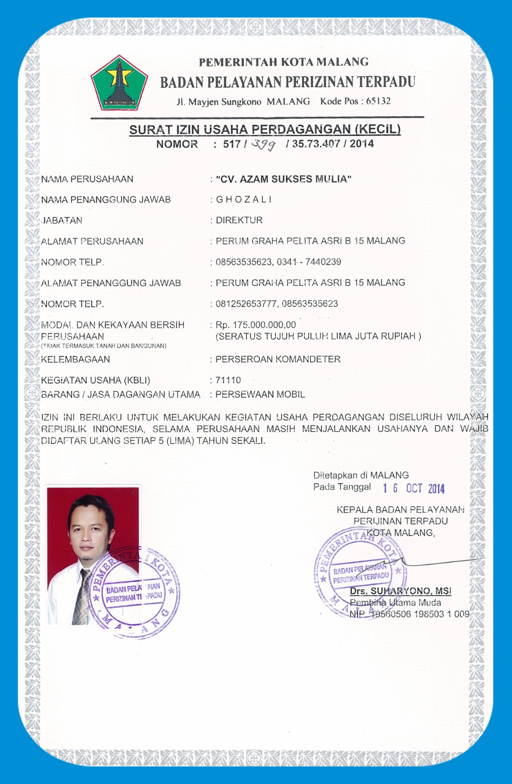 Legalitas usaha Percayakan kebutuhan event dan perjalanan Anda kepada Azam Go Holiday sekarang juga! Karena kami dilengkapi dengan legalitas usaha sesuai dengan spesifikasi kebutuhan Anda.